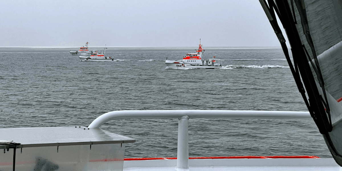 DGzRS接到警报后迅速响应,立即从沿岸53个搜救站中调派多艘专业搜救船奔赴现场,包括六艘主力搜救船,同时协调 Bremen海事搜救协调中心(MRCC)统筹指挥全局。为扩大搜救范围,当地引航船、水上警察艇、拖轮及德国海军航空兵的搜救直升机也相继抵达事发水域,形成海陆空协同搜救体系。
