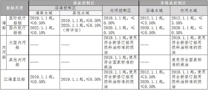 中国船舶大气污染物排放控制区实施方案硫含量控制要求
