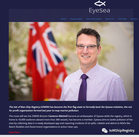 ·IOMSR 官方正式支持 Eyesea 计划,该计划是为绘制海洋污染地图而成立的非营利组织。IOMSR 总管Cameron Mitchell 是 Eyesea 企划的官方大使。IOMSR下属的的 380 多艘船只上的 10,000 名海员,也是该组织的成员。Eyesea 旨在通过在新开发的应用程序中收集数据并向 Beach Buddies "海岸伙伴" 等非政府组织和政府组织报告石油泄漏、垃圾和碎片事件以采取行动清理解决海洋污染问题。Cameron 是一名海洋工程师,是有 17 年丰富经验的的海员 - 他说海洋污染是他和 IOMSR 团队极为关心的一个问题 ,尤其是通过亲身体会在海上工作期间亲眼目睹了污染对海洋环境的毁灭性影响。