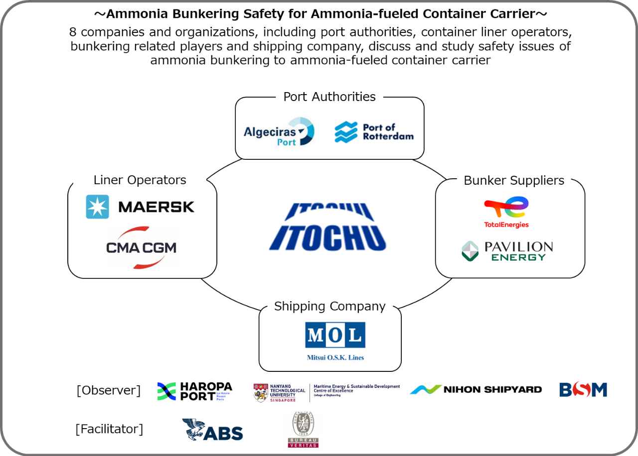 就在不久前的9月22日,日本伊藤忠商事宣布与马士基和达飞轮船等8家合作伙伴签署谅解备忘录,将联合研究氨燃料集装箱船在氨燃料补给时的安全性,目的是在航运业推广使用氨作为船用燃料。