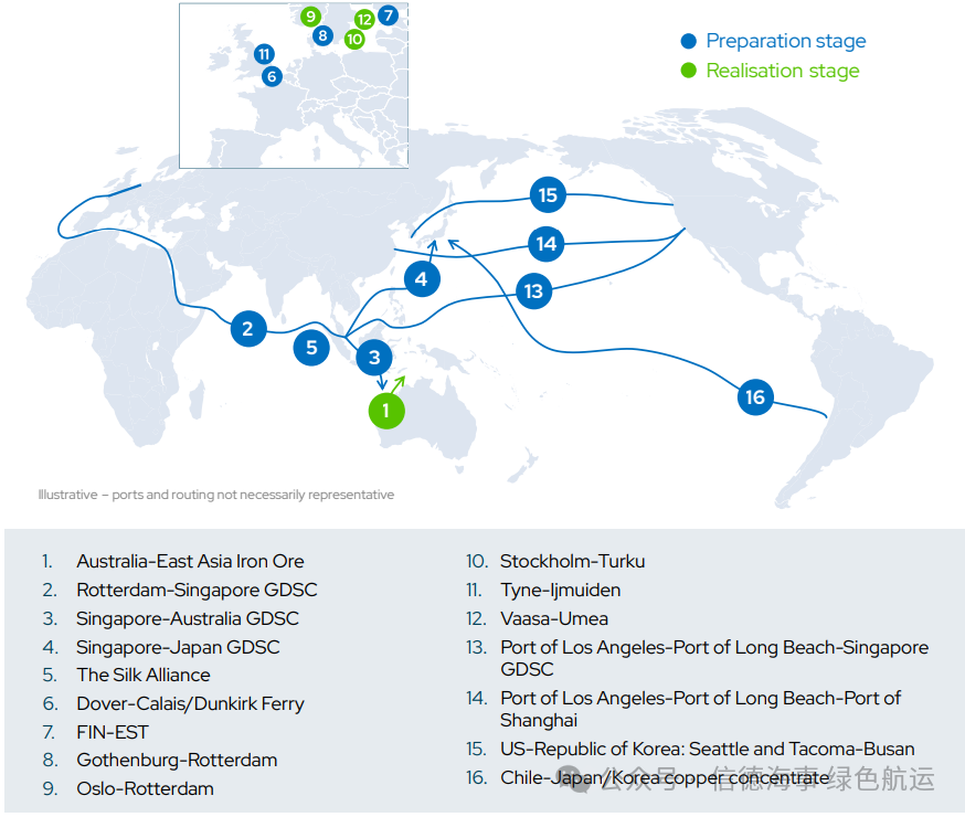 然而目前有12个绿色航运走廊项目已经处于筹备阶段,另外有4项已经处于落实阶段。