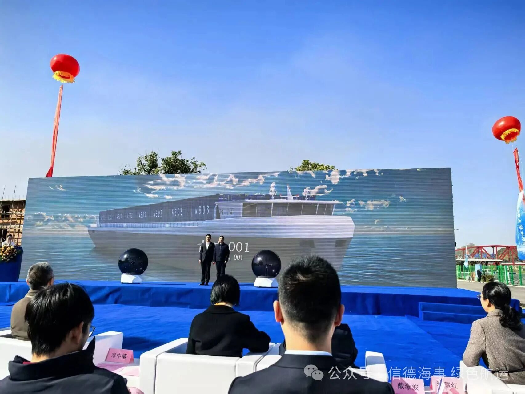 11月28日,全国首艘入级中国船级社(CCS)并获智能航行“N”符号的64TEU纯电动内河集装箱船——“青电001”号在浙江湖州正式交付启航。