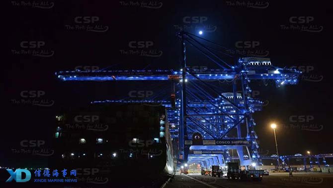 中远海运中东第一港——中远海运集团旗下中远海运港口有限公司与阿联酋阿布扎比港务局合资经营的中远海运港口阿布扎比码头(CSP Abu Dhabi Terminal)完成首艘大型集装箱船舶靠泊作业。
