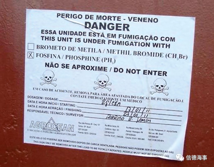 据信德海事网了解,干散货船舶熏舱,一般使用的是一种含有磷化铝aluminium phosphide 的药物,而因为未按相关程序或规定使用该种药物而最终造成船舶火灾甚至如上发生的爆炸事故并不少见。