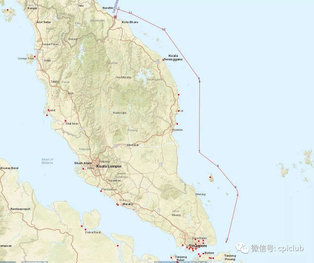 参考No. R97图,协会防损部将马来西亚柔佛东部海域领海边界线的连接点概位进行提取制表如下,仅供会员船舶参考: