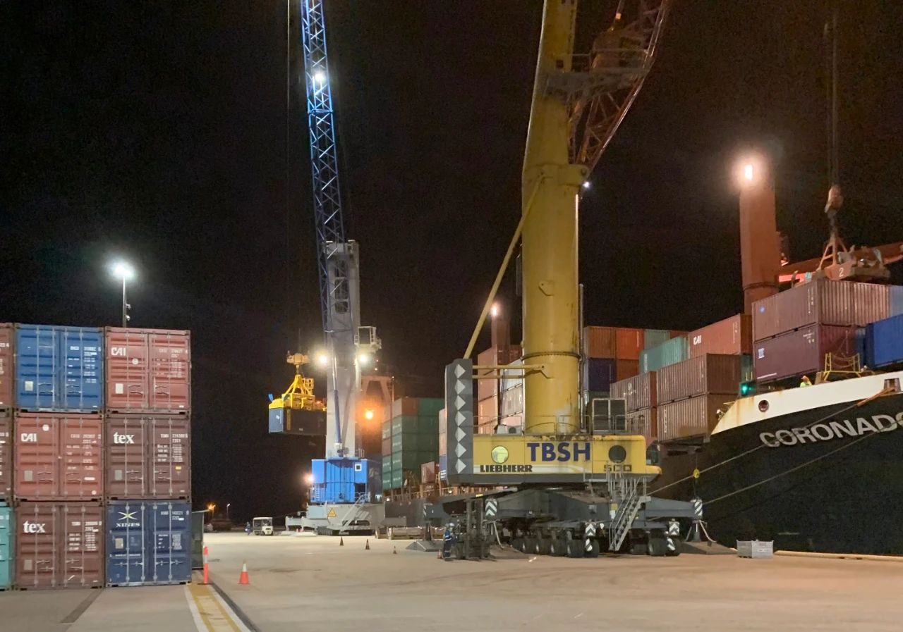 在接下来的32个小时内,两台移动式港口起重机成功部署,超过700个集装箱被卸载。