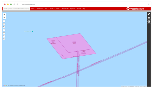通过VesselsValue平台的“定位”模块,我们可以看到全球的风电场,以及相应的电缆、涡轮机的所在位置。其他相关信息,如产能(兆瓦)、涡轮机数量、涡轮机制造商、项目运营商等,也可与变电站、变压器位置等信息一并显示。