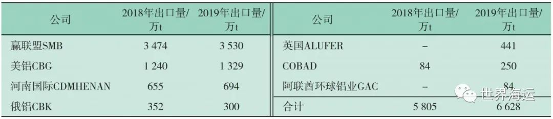 表5 2018—2019年几内亚主要铝土矿出口商及出口量