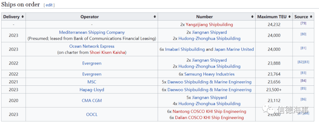 一个值得注意的地方时,如信德海事网此前介绍,目前的订单主要是最大类型的集装箱船,以及小于3500 teu的较小的区域性支线型集装箱船舶。