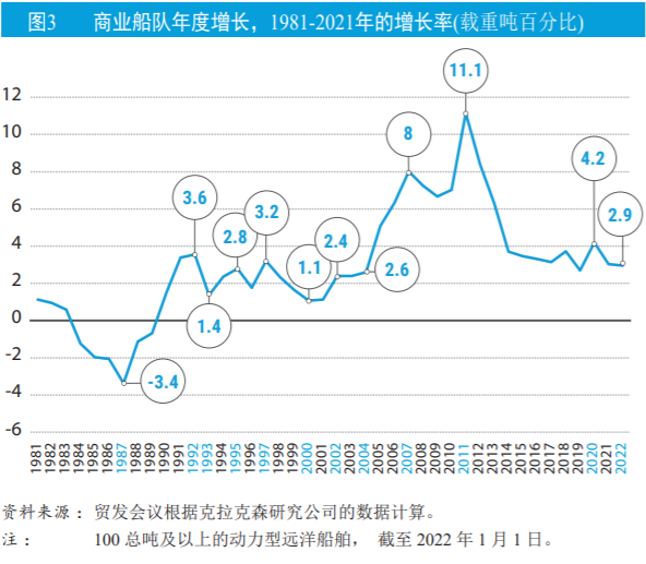 2021年,全球商业船队增长不到3%,为2005年以来第二低的增幅