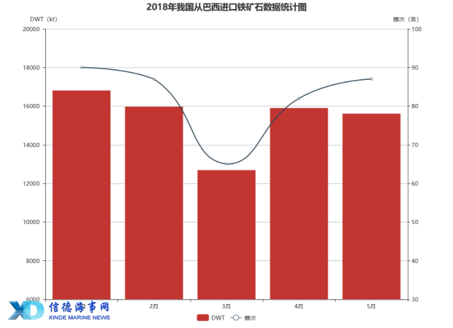 从澳大利亚铁矿石发运统计来看,2018年1-5月澳大利亚共计离港2057艘次,37870.6万吨,5月离港449艘次,8240万吨,创2018年新高。