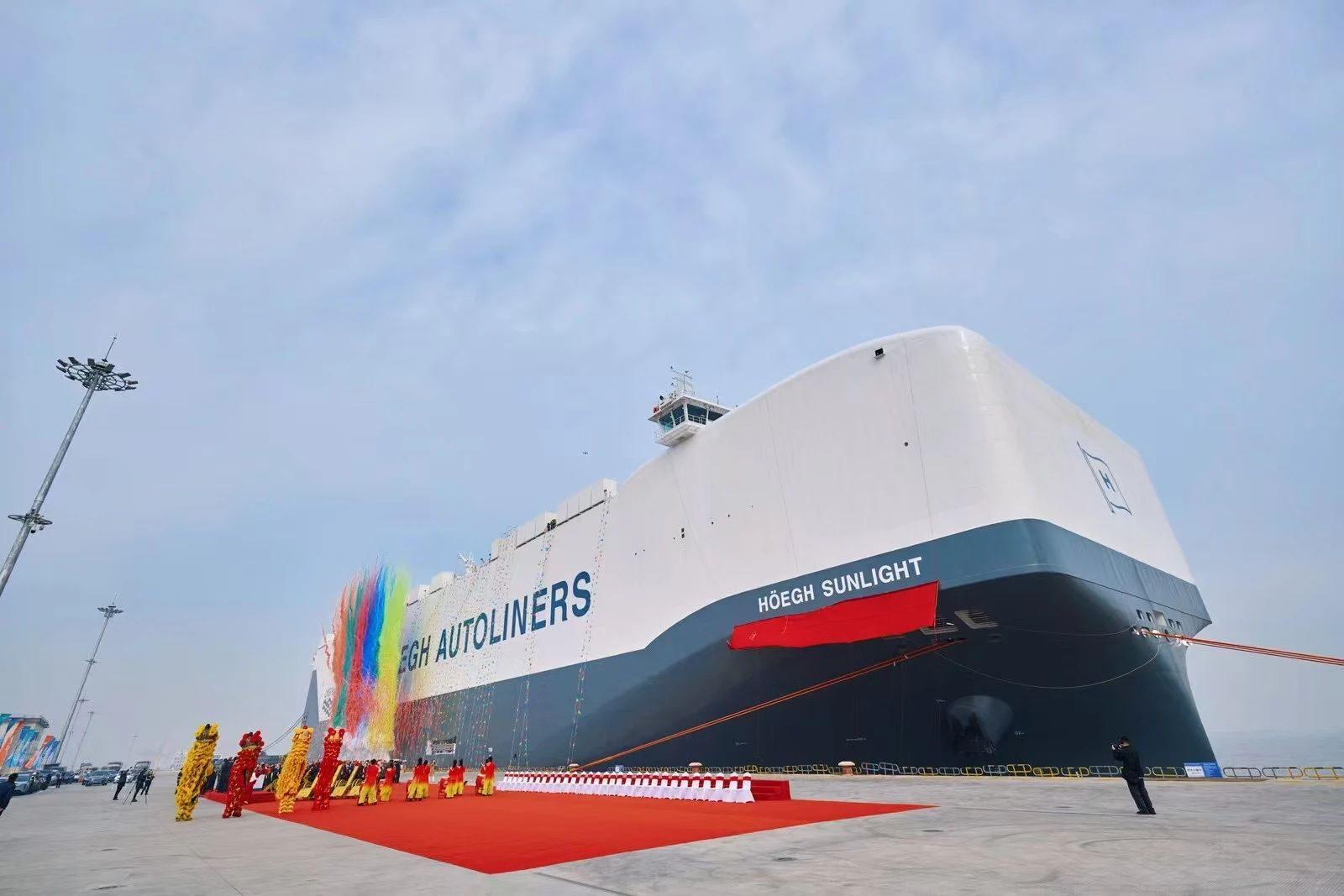 2025年1月14日,挪威礼诺航运的第四艘极光系列9100车位LNG双燃料滚装船“HÖEGH SUNLIGHT(礼诺阳光)”号在中国江苏太仓海通汽车码头举行盛大的命名仪式。