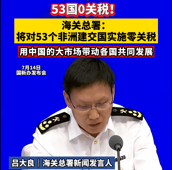 今年7月14日,海关总署在国务院新闻发布会上宣布,将对53个非洲建交国实施100% 税目产品零关税政策,进一步扩大中国市场开放,促进中非经贸合作。