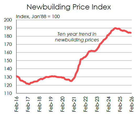 除了船台本身产能紧张外,新造船价格过高也是下单数量骤降的原因之一。据克拉克森新造船价格指数显示,自2021年开始,新造船价格从123点被暴力拉升至10年来最水平190点,指数上涨超54%。虽然,2026年造船价格较2024年有所回落,但仍然处于10年来造船价格高位区间。