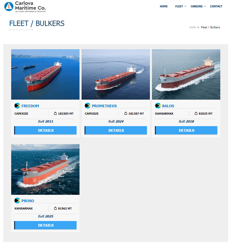 Carlova 官网也明确表示,公司代表着对 Samos Steamship的“直接延续”,而 Samos Steamship 本身是一个可追溯至 1911年的希腊老牌航运企业。Carlova 在设立初期就承接了原 Samos 体系下的部分船舶与大部分岸基团队,因此它虽然是新品牌,但在运营、管理、船员资源以及市场网络上,并不缺乏历史积累。