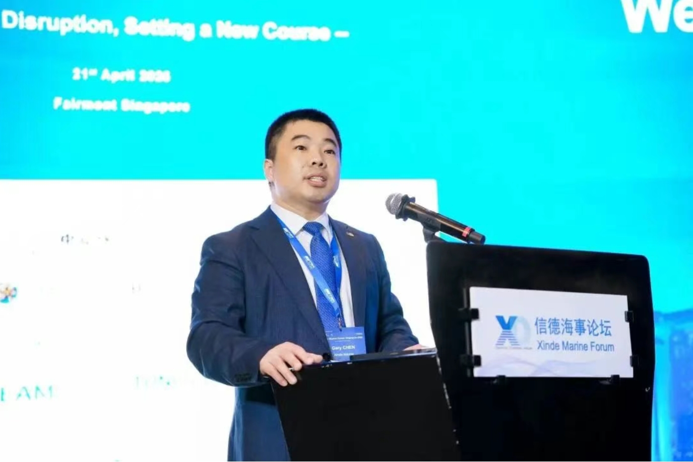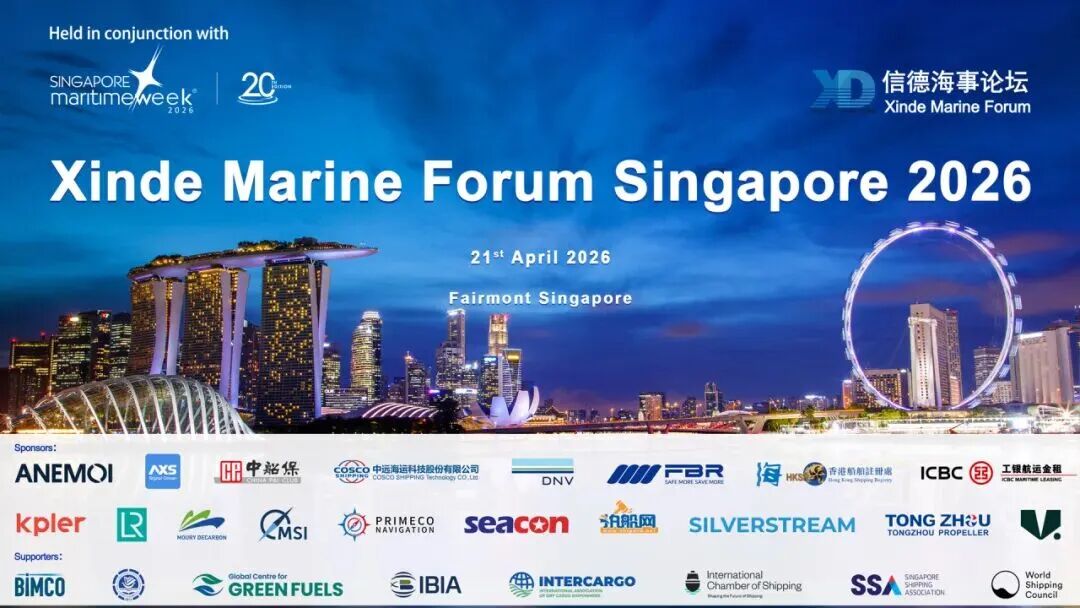 (信德海事网讯)4月21日,由信德海事网主办的第四届信德海事新加坡论坛(Xinde Marine Forum Singapore 2026)在新加坡费尔蒙酒店成功举办。本次论坛以“Navigating Disruption, Setting a New Course(乘风破浪,启航新程)”为主题 ,吸引了来自全球航运产业链的贸易商、船公司、船管公司、船级社、船厂、经纪公司、金融及保险机构等200位多代表齐聚一堂,围绕集装箱航运新平衡、干散货市场新格局、油轮市场风险与策略以及航运投资重塑等热点话题展开深度讨论与智慧碰撞。