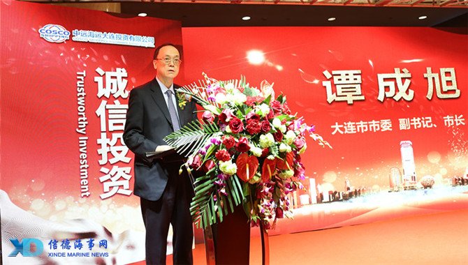 谭成旭在致辞中表示大连市与中远海运集团有着长期的合作关系,中远海运集团多家驻连单位多年来为大连东北亚国际航运中心建设做出了积极贡献。2018年11月,大连长兴岛经济区与中远海运集团签署战略合作框架协议,双方将在仓储物流,油化产业新技术孵化等领域开展深入合作。中远海运大连投资有限公司正式成立,正是双方战略合作结出的丰硕成果。当前,大连市正在深入贯彻习近平总书记在辽宁考察时和在深入推进东北振兴座谈会上的重要讲话精神,全力推动高质量发展取得新突破、新进展,这为大连市与中远海运集团的合作提供了更多机会。中远海运大连投资有限公司的成立,必将为大连加快东北亚国际航运中心建设、推进东北振兴注入积极力量。