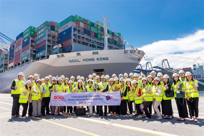 (香港,2019 年 7 月 25 日)香港海港联盟(「海港联盟」)今日欢迎全球最大货柜船舶之一的东方香港号(OOCL HONG KONG)首次靠泊海港联盟旗下的葵涌八号货柜码头。东方香港号与另外十艘来自东方海外货柜航运有限公司(「东方海外」)和中远海运集装箱运输有限公司(「中远海运」)的超大型货柜船,自六月底开始投入海洋联盟 (OCEAN Alliance)之亚洲–北欧航线。这次海洋联盟把香港纳入该航线的停靠港,再一次确立香港作为国际航运枢纽和通往中国内地门户的地位。