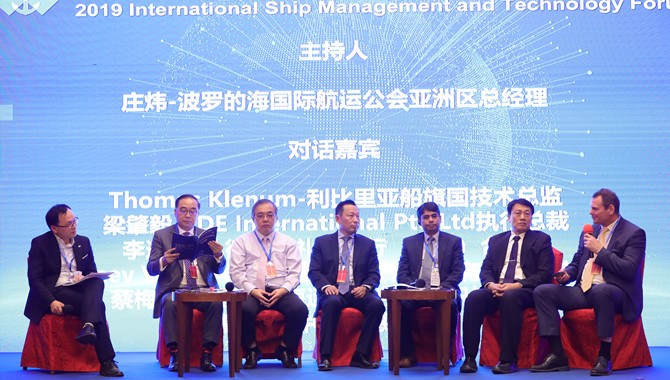 在安全航运讨论对话环节,由利比里亚海事局中国区首席代表 叶波先生主持,上海鼎衡船务有限公司董事长李多珠先生、上海瑞宁航运有限公司副总经理 周笠雨先生、贝仕船舶管理(中国)有限公司董事总经理刘明发先生、洲际船舶管理有限公司总经理赵勇先生、前线资本董事总经理 苏宁先生、香港船东会副总监 冯佳培先生作为对话嘉宾,围绕“船东及船舶管理行业面临的问题及解决方案”议题进行讨论。