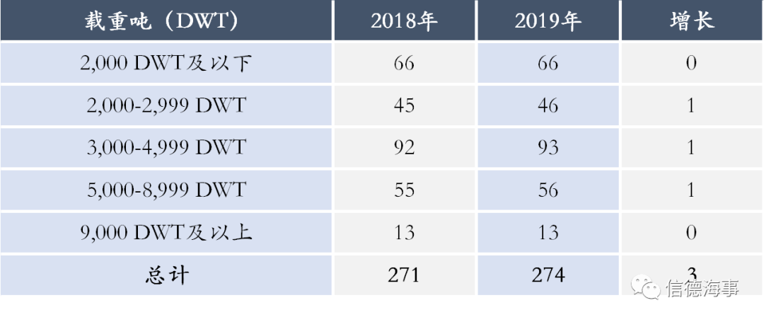 每次挂靠平均船舶吨位4,021 DWT,与2018年(4010DWT)相比无明显变化。