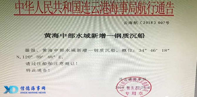得到消息后,信德海事网随即与连云港海事局进行了核实。连云港海事确认了此事并给信德海事网发来以下航行通告。(经纬度以以下通告为准)