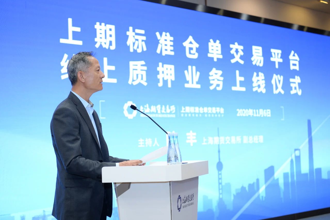 2020年11月6日上午9时,标准仓单线上质押业务在上期标准仓单交易平台成功上线。上期所理事长姜岩、上期所总经理王凤海、上海市商务委员会副主任刘敏、上海市地方金融监督管理局(金融工作局)副局长李军、中国工商银行普惠金融事业部总经理田哲、中信银行业务总监吕天贵、平安银行行长助理周立、新湖瑞丰、国君风管和宏源恒利等银行及交易商相关部门嘉宾出席上线仪式。