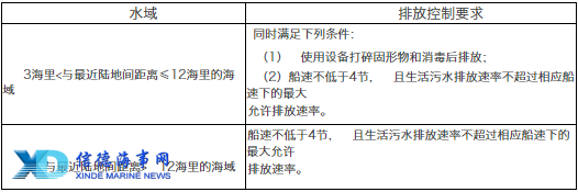 距最近陆地3海里以外海域船舶生活污水排放控制要求