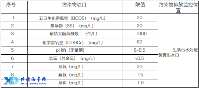 在距最近陆地3海里以外海域,船舶生活污水污染物排放控制按下表规定执行。