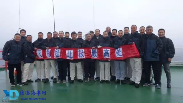 当地时间9月12日15时50分,中远海运特运天福轮抵达此次北极航行纬度最高点78°00.999′N,085°45.288′E。