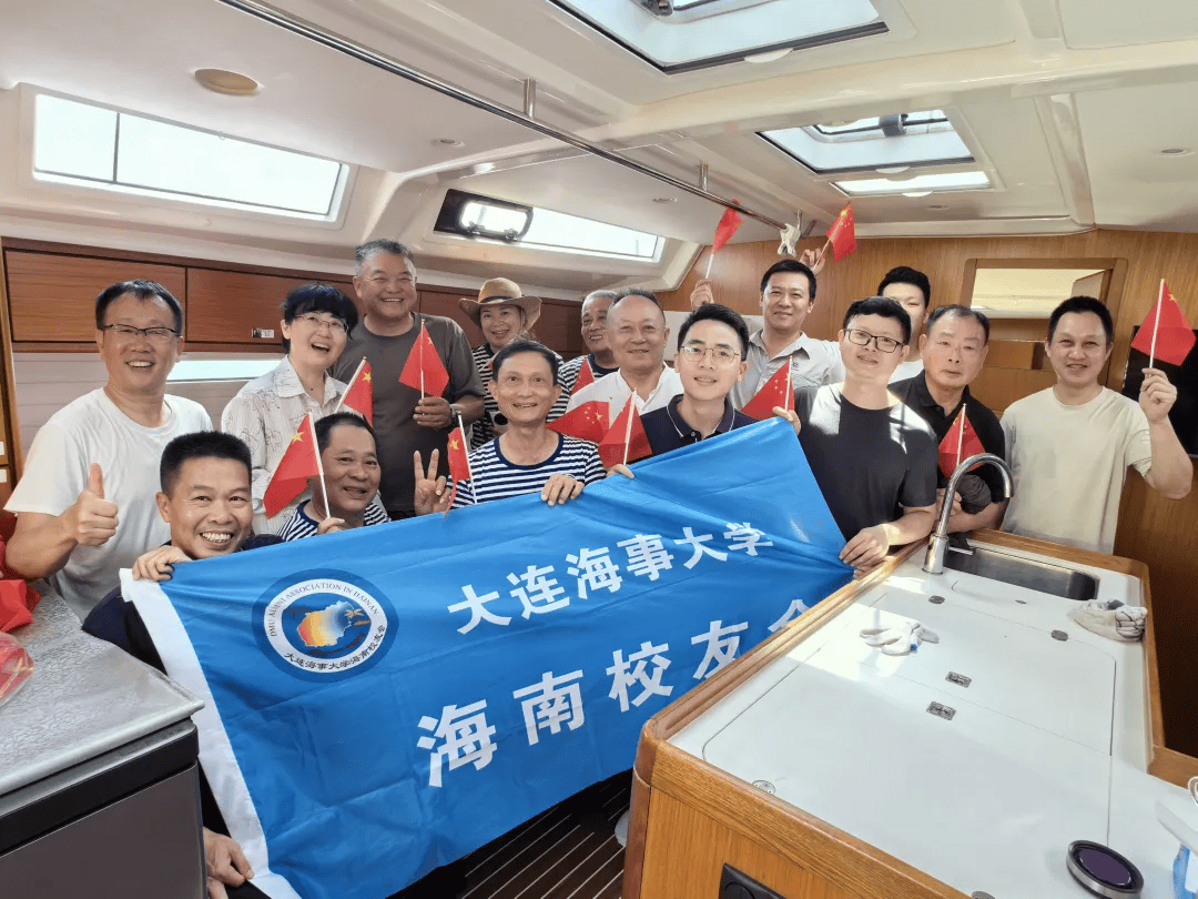 5月14日,海大大连校友会代表们抵达海口。海南校友会校友们登上"德济"号帆船热情迎接,两地校友在帆船上握手畅谈,回忆当年在航海实习中打绳结、算潮汐的校园时光,共叙海大情,互换礼物。