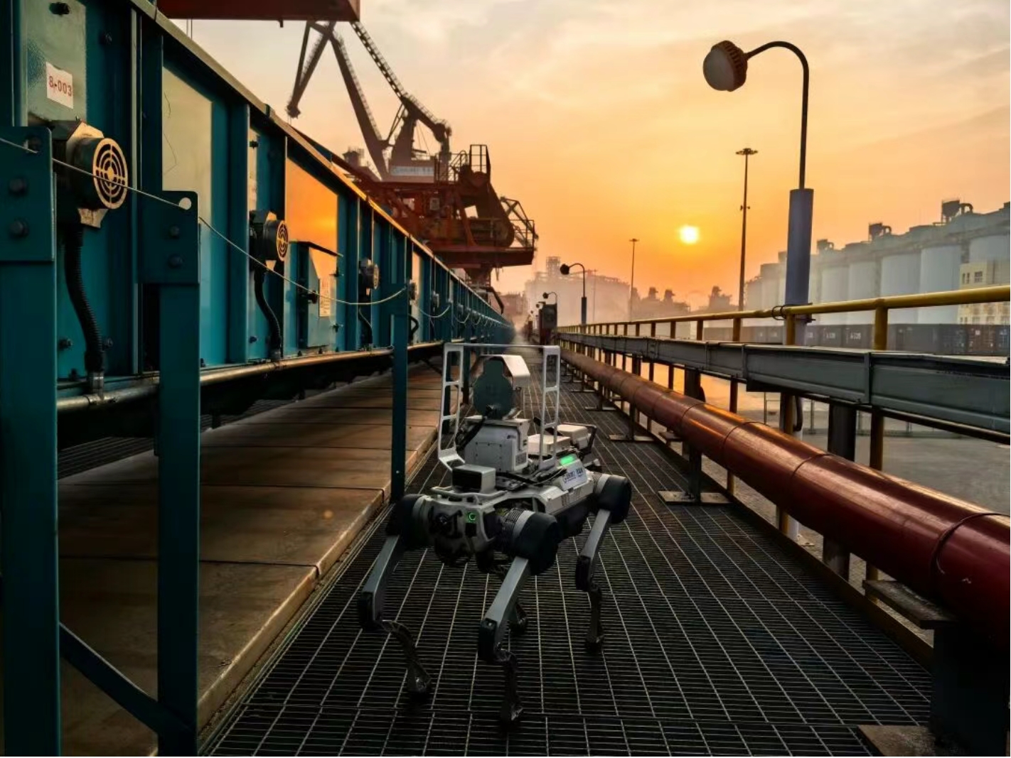 “过去,一次巡检要往返6公里,棉袄都能湿透。现在只需在系统中一键下发任务,机器人就能自主从充电房出发,完成筒仓下方风机、驱动电机的温声检测,再沿着专用斜坡爬至皮带机廊道,排查托辊等关键部位隐患,排查运行状态。”青岛港董分公司粮食队队长助理陈厚斌介绍道,这位“科技哨兵”故障预警准确率超过98%,整体巡检效率较传统人工方式提升3倍以上。