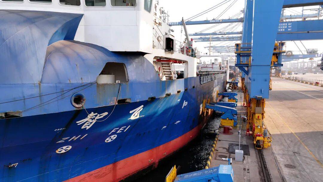 作为山东海事部门交通强国建设试点任务的核心成果,“智飞”号搭载国内自主研发的智能航行核心系统,是世界最早具备自主航行能力的船舶之一,也是国内首艘面向商业运营的智能运输货船,具备人工驾驶、远程遥控、无人自主航行三种模式。此次驶入青岛港自动化码头,采用无人自主航行模式,船舶自动精准规划航行线路,稳稳进入泊位区域。