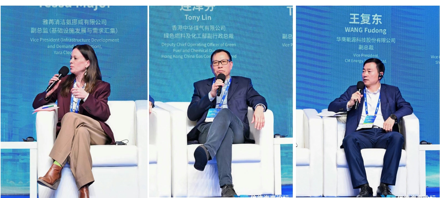 本场对话由普氏全球甲醇全球估价组长黄明珠主持。上海吉远绿色能源副董事长赵志坚指出,其吉林四平20万吨绿色甲醇项目已动工,预计2027年投产,强调项目不仅追求商业回报,更致力于利用秸秆解决农村污染,实现社会价值。香港中华煤气绿色燃料及化工部副行政总裁连泽芬分享了内蒙古煤制甲醇工厂的改造实践,指出当前绿色甲醇成本高企主因是生物质原料成本与间歇性能源导致的低设备利用率,正通过长协稳定供应、优化技术来降本。华商能源科技副总裁王复东介绍,公司已在西北规划10万吨绿色甲醇及2万吨绿氨项目,预计2028年具备供应能力,呼吁产业链协同。雅苒清洁氨挪威有限公司副总监Tessa Major强调,氨燃料可同时服务化肥、化工和航运,多市场需求聚合有利于分摊基础设施投资,欧洲与亚洲的驱动因素各异。