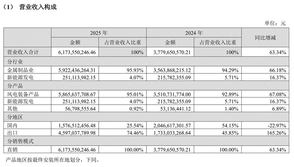 大金重工向后端延伸,并不是脱离主业的横向扩张,而是建立在既有订单、产能和交付能力基础上的继续补链。根据公司2025年年度报告,2025年公司实现营业收入61.74亿元,同比增长63.34%;归母净利润11.03亿元,同比增长132.82%;期末累计在手海外订单总金额超过100亿元,主要集中在未来两年交付。年报同时披露,曹妃甸深远海基地年设计产能50万吨,报告期内已实现批量化生产。这些数据放在这里,意义不在资本市场层面,而在于说明:大金重工当前补运输、补安装,有现实支撑,也有交付基础。