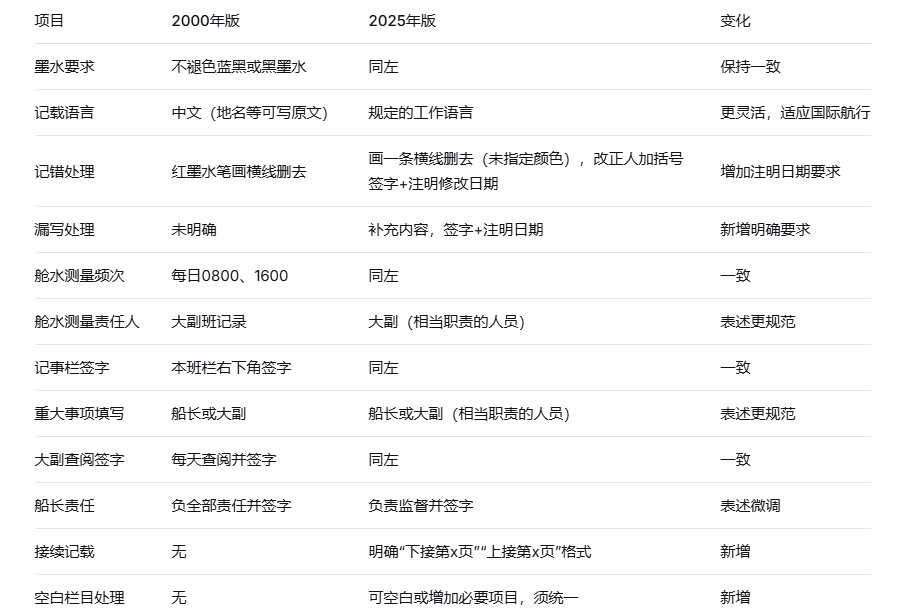 请各航运公司、船长、驾驶员认真学习新国标要求,提前做好航海日志更新准备,确保新旧标准平稳过渡,具体要求请参考附件。