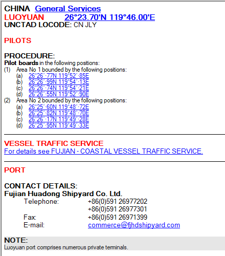 -- Fuzhou Vessel Traffic Service (罗源湾的VHF为CH12/16)