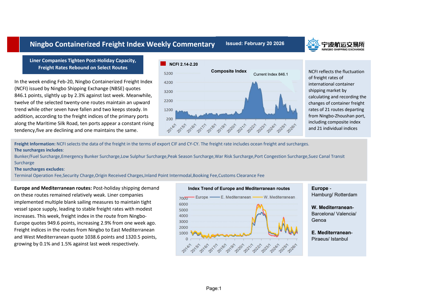 Ningbo Containerized Freight Index Weekly Commentary 2026 2.14-2.20 |