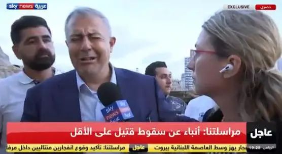 贝鲁特省长马尔万·阿布在现场讲话时哽咽哭泣