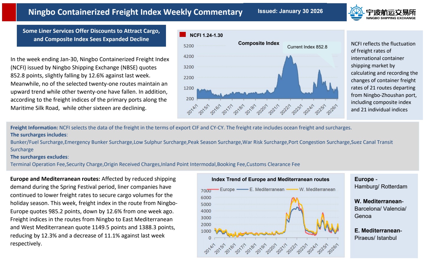 So far in February, the number of ships transiting through the Gulf of Aden and the Suez Canal is 50% and 37% lower than last year respectively. Container ship transits are down by 70% through the Gulf of Aden and the Suez Canal. Prior to the attacks, shipments through the Suez Canal accounted for roughly 10% of global trade.