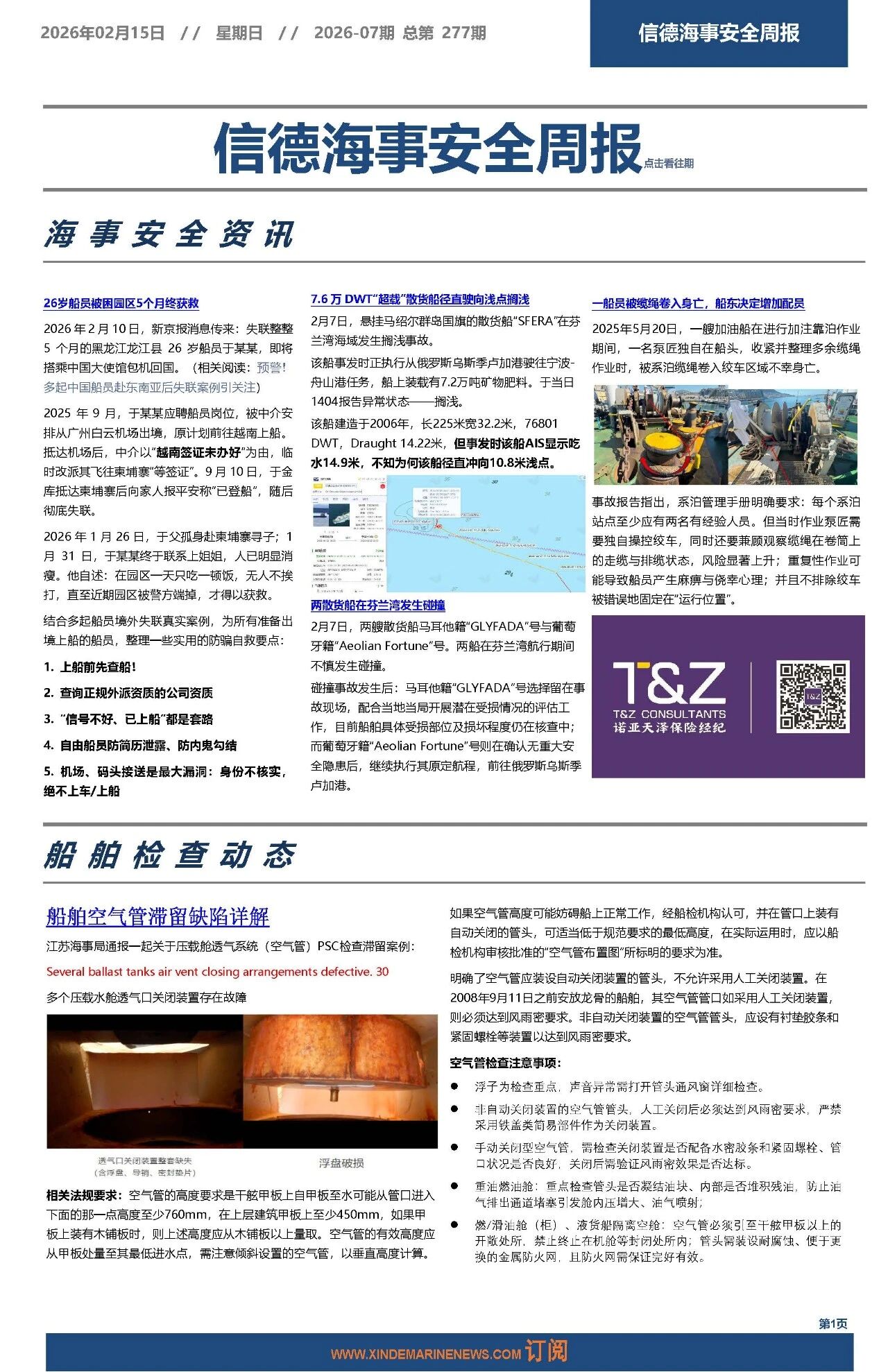 信德海事一直把实现海上更安全当作我们的愿景之一。2020年8月22日正式推出《信德海事安全周报》,2021年1月,《信德海事安全月报》上线,2021年2月,《信德海事安全指南》上线。如有船公司需订阅以上产品,请联系:safety@xindemarine.com。