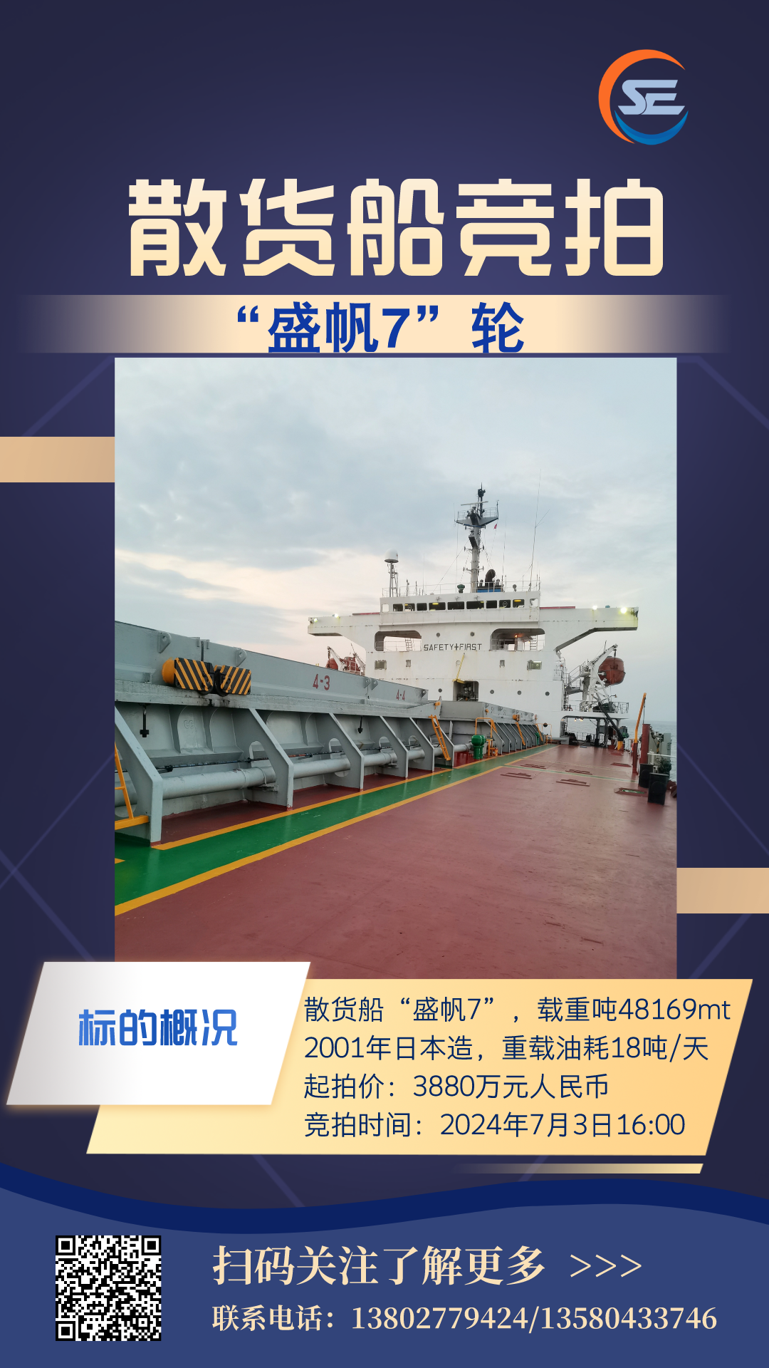 交船时间、地点:2024年7月25日—2024年8月15日,在中国沿海港口/锚地。