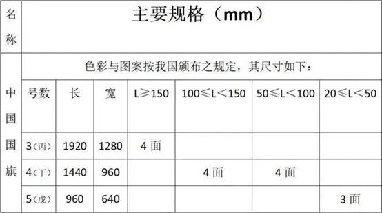 (五)外国籍船舶悬挂的中国国旗尺度,一般应不小于其悬挂的船旗国国旗的尺度。