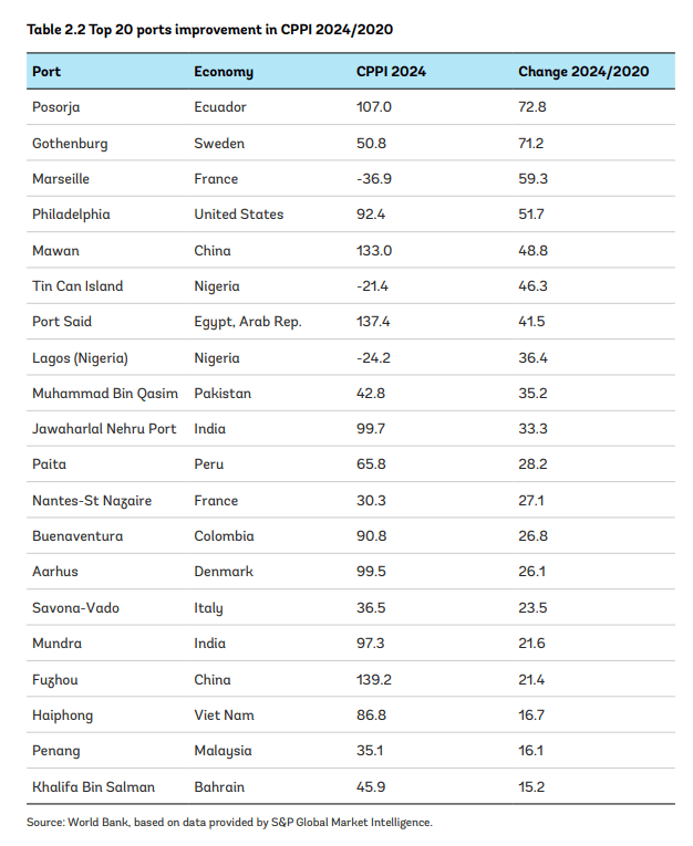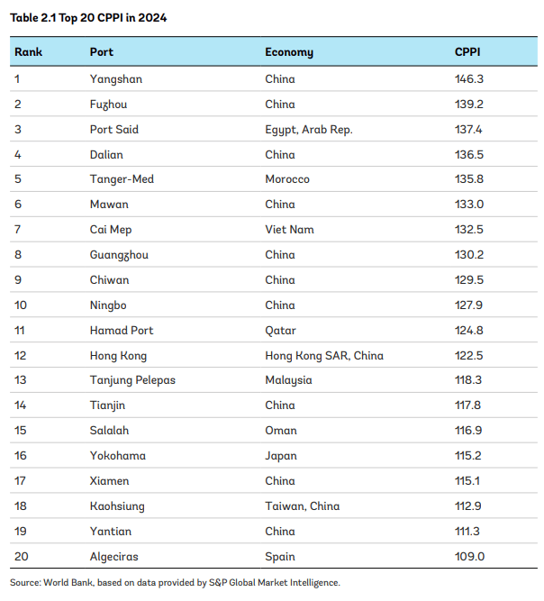 中国港口主导全球效率榜 —— 世界银行与标普全球发布《2020–2024全球集装箱港口绩效指数》