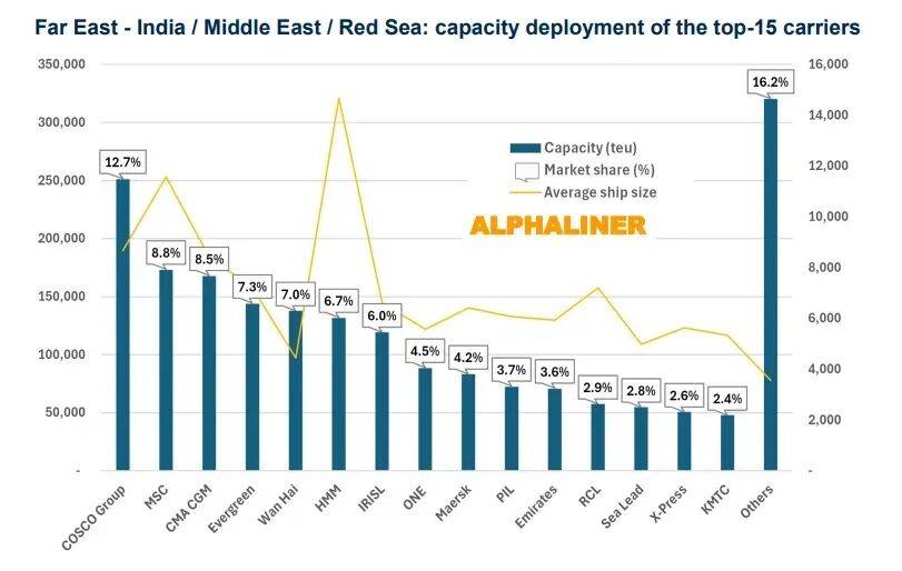 中远海运集团凭借25万TEU运力,在远东—印度/中东/红海航线上以12.7%的份额稳居第一,是唯一在该航线部署超级大型船的承运人。但与此同时,中远通过OOCL的双品牌灵活布局,持续加大对东南亚、南亚和中东市场的投入。东方海外2025年上半年收入同比增长4.9%,净利润增长14.5%,充分说明区域化布局带来的红利。(中远海控,太猛了!;OOCL推出新航线! 中国—印度次大陆;东方海外,业绩大涨!)