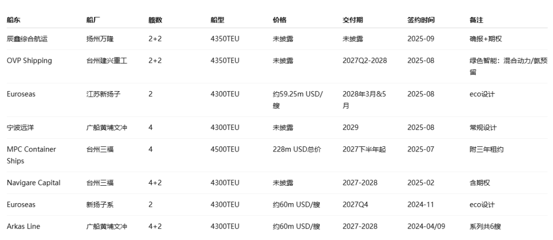 从船东到区域性航运公司,这些订单释放出一个明确信号:中小型集装箱船正在迎来新一轮投资热潮。