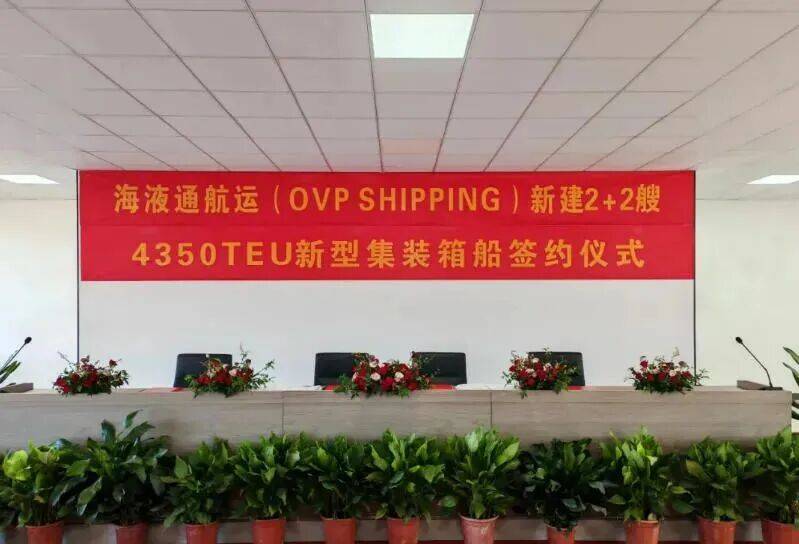几乎同时,海液通航运(OVP Shipping)也在台州建兴重工隆重签约,订造2+2艘4,350TEU绿色智能船。与传统设计不同,这批新船采用混合动力系统,并预留氨燃料改装空间,单箱碳排放可降低25%,预计2027–2028年交付后,将专项部署在中国至中东、北非及红海航线。(2家新的中国船东,出现了!)