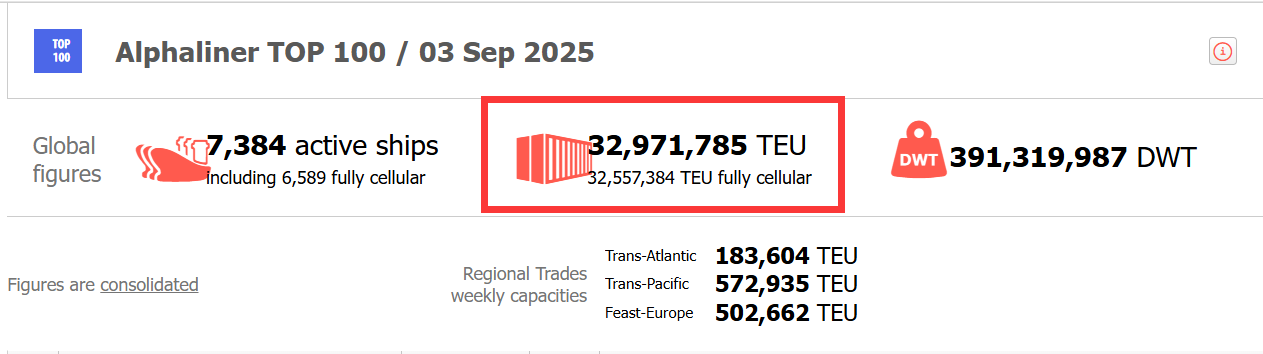 根据Alphaliner最新数据显示,目前活跃的全球的集装箱船舶总共有7384艘,总运力近3300万TEU,这意味着目前的新船订单占现有船队运力比例接近30%。