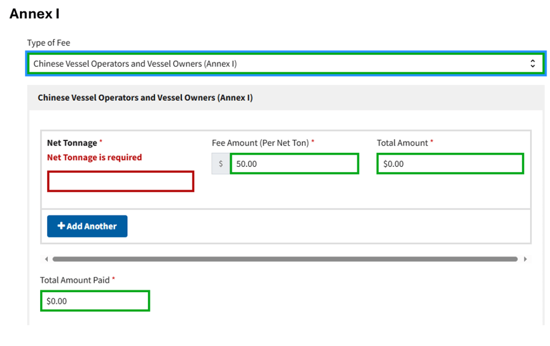 ● 附录 I:对中国实体拥有或运营的船舶征收每净吨50美元的费用;