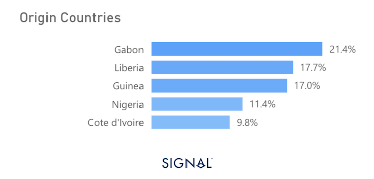 不过,锰矿转化为锰铁的比例约为2.2:1,意味着在出口禁令实施后,海运需求将减少一半以上。目前,加蓬贡献了西非超灵便型船运输需求的20%左右,其中近三成来自锰矿出口。