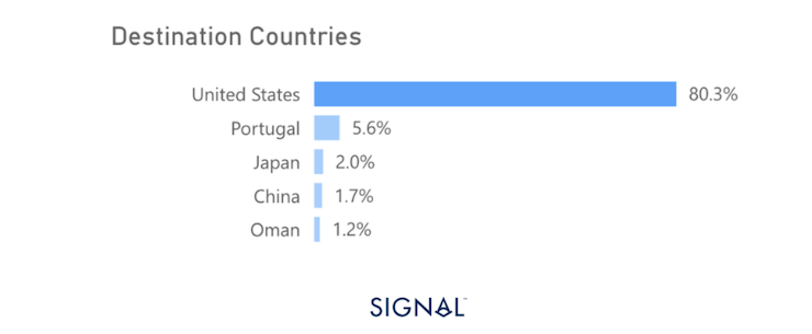Signal Ocean数据显示,8月全球锰矿石出口量为420万吨,同比增长20%,但环比下降8%。非洲大陆占全球锰矿出口的84%,加蓬与南非是主要出口国。